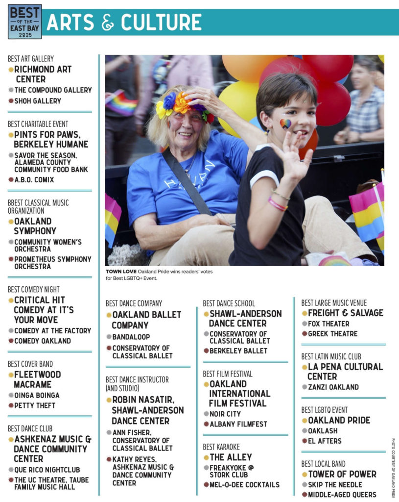 Sign in Welcome! Log into your account your username your password Forgot your password? Get help Password recovery Recover your password your email A password will be e-mailed to you. TRENDING: October brings change and connection Keeping the synapses snappin’ Litquake expands horizons Radical belonging meets play at SoulPlay Festival Film photography rebounds amidst a sea of digital images .Best of East Bay 2025 – Arts and Culture By Best of East Bay 2025 - Readers' Picks September 1, 2025 Share Facebook Twitter Linkedin Email Print Best of East Bay 2025 - Readers' Picks LEAVE A REPLY Cancel reply Comment: Please enter your comment! Name:* Please enter your name here Email:* You have entered an incorrect email address! Please enter your email address here Website: Save my name, email, and website in this browser for the next time I comment. Please sign me up for the newsletter Yes No Previous ArticleWhen self-care means hair now, flow laterNext ArticleTransitions: When a daughter becomes a son 64FansLike2,391FollowersFollow39FollowersFollow