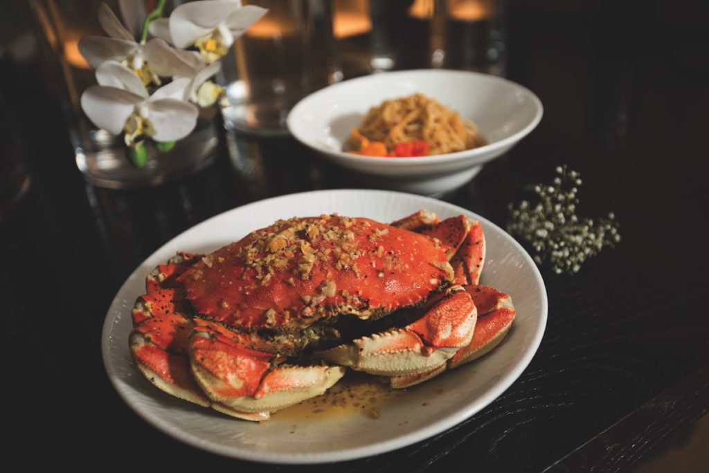 NEXT CHAPTER An’s Famous Garlic Roasted Dungeness Crab and garlic noodles tantalize diners at Crustacean. (Photo courtesy of Crustacean San Francisco
